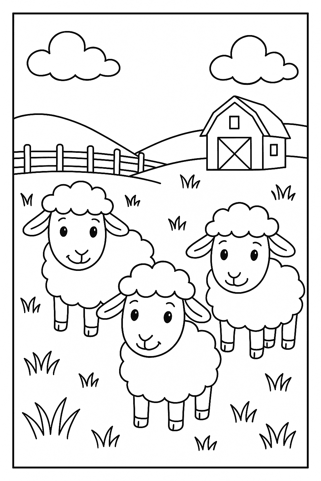 - Fluffy Sheep: Instead of coloring the whole sheep, try drawing small “C” shapes or swirls to mimic thick, curly wool.