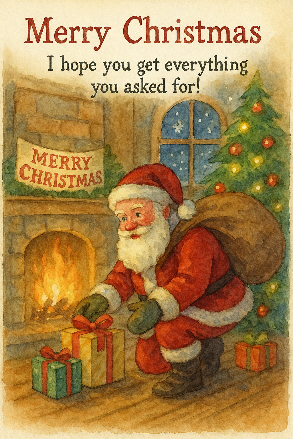 Merry Christmas Santa Watercolor