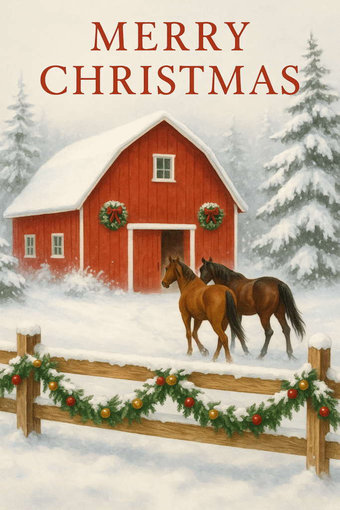 Merry Christmas Horses At Barn
