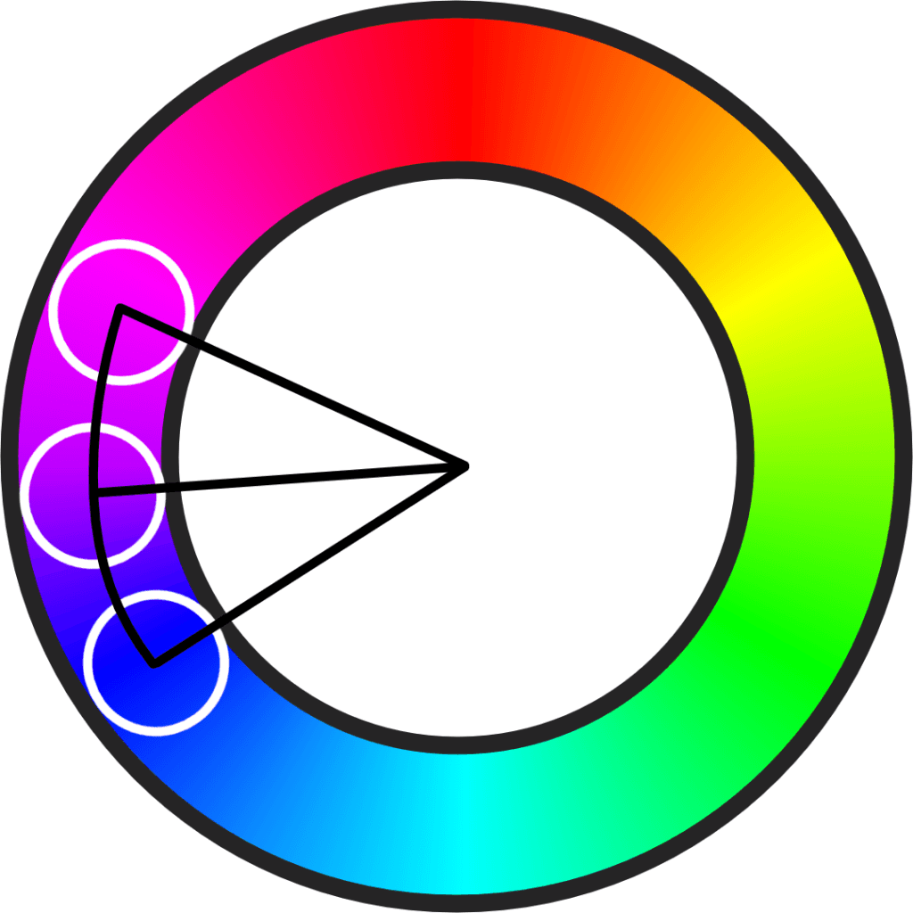 Similar to monochromatic, the analogous relationship can be used for setting the tone of a piece. However, analogous also has the advantage of being able to make a bit more cohesive and grounded pieces. Often times monochromatic pieces are going to feel heavily stylized because it is rare to only see one color in real life, but analogous can offer a more natural feeling while still being cohesive.