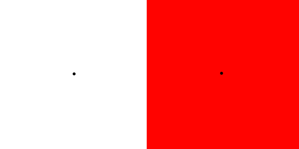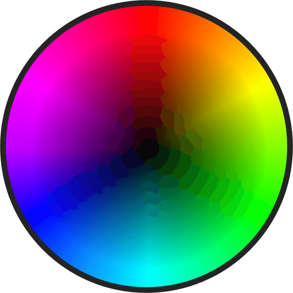 In this color wheel we see red and green at the opposite sides of the wheel so it may seem like they are the furthest in the way we perceive colors. However, red and cyan are more distant for our color perception. Interestingly, we can find out which colors are opposite by staring at them. If you stare at a decently bright screen that is red, and then stare at a blank/white wall or screen you will see the afterimage in cyan not green. If your eyes are sensitive to straining we recommend scrolling past the image.