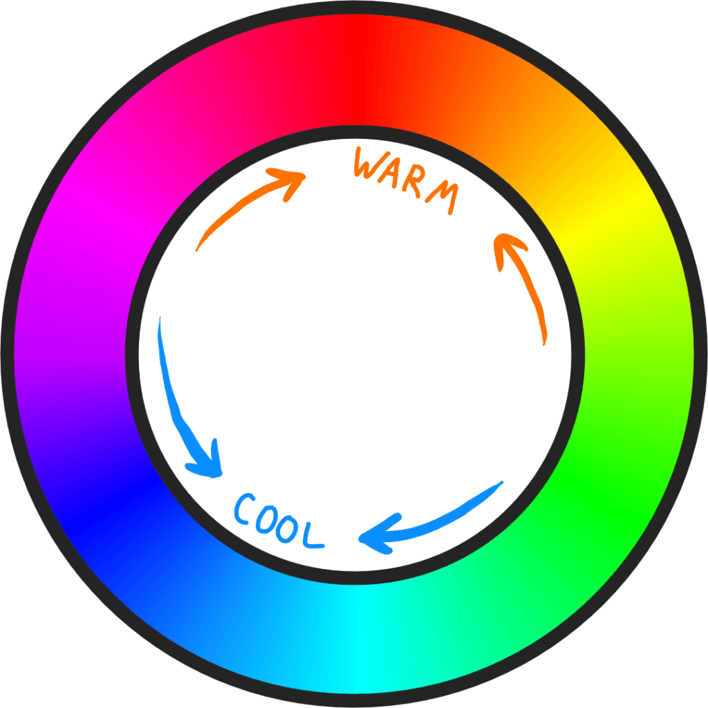 In addition to using these color relationships, it is helpful to understand how color can set the warmth of a piece. Separating the color wheel into warm and cool colors has evolved from a history from the 18th and 19th centuries. Because of this storied history, we can see that understanding colors through this lens is valuable, even if it feels arbitrary at times.