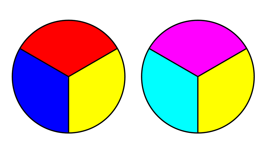 For the purpose of this guide, we describe the primaries as a set of 3 colors that are the foundation of a color wheel. We will talk about two prominent primary color sets used today and the significance of the color wheels resulting from these primaries. These color sets are RYB (red, yellow, and blue) and CMY (cyan, magenta, and yellow).