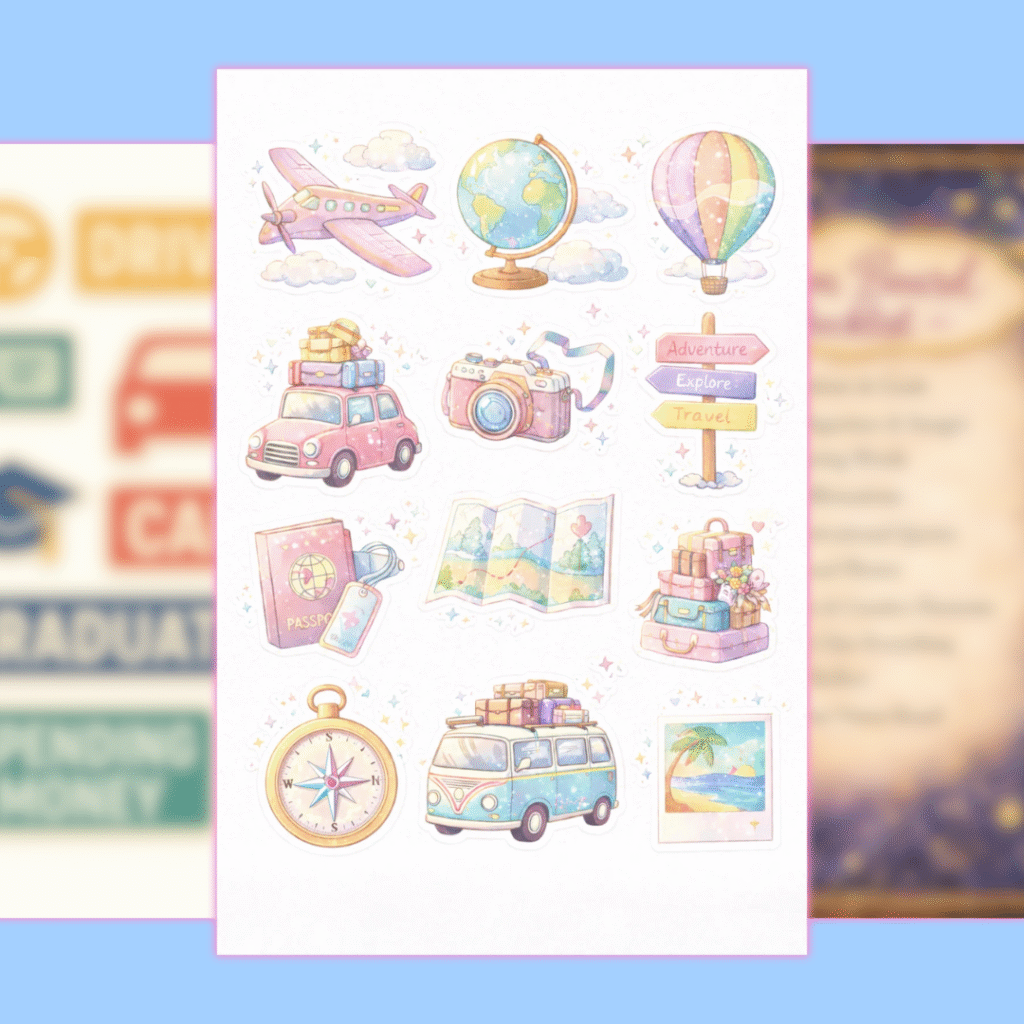 Our collage craft pieces are designed for scrapbooking, journaling, sticker-making, and mixed-media projects. Print, cut, and layer them to build pages that reflect your style—perfect for creative journals, vision notebooks, or aesthetic planners.