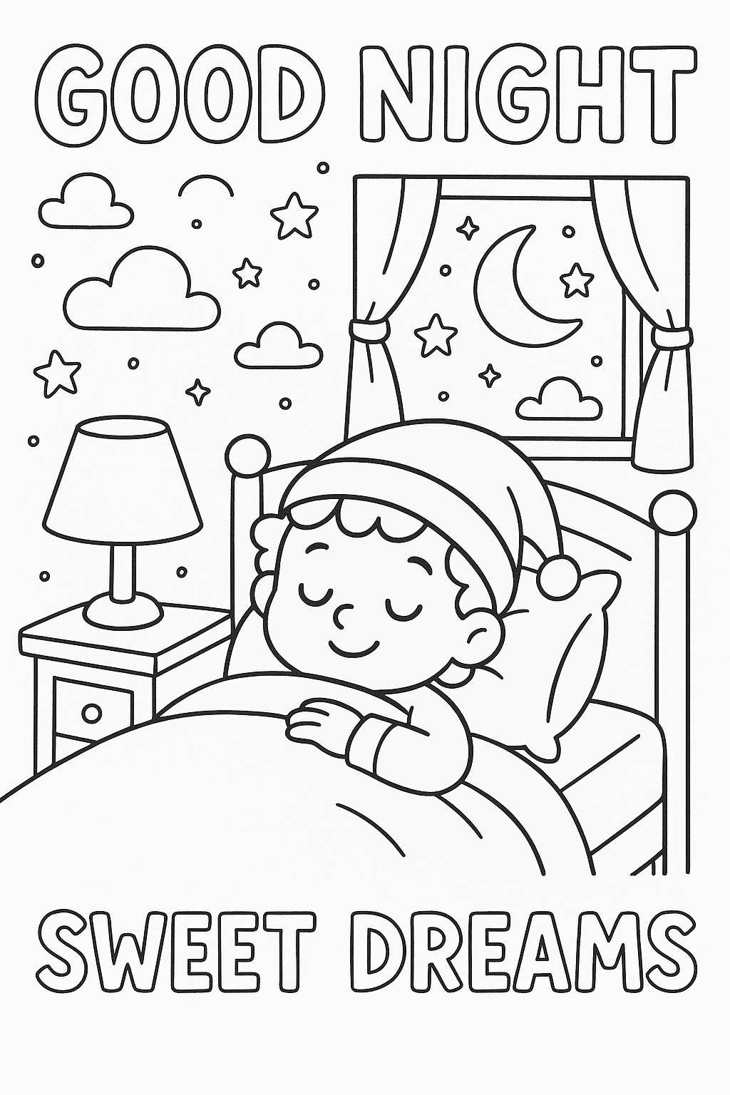 End the day with peace and imagination using our free printable Good Night coloring pages! These calming printables are perfect for bedtime, featuring gentle, dreamy scenes that help children relax and wind down after a busy day. From glowing moons and twinkling stars to sleepy animals tucked under blankets, each page invites little artists to color their way into a world of comfort and sweet dreams.