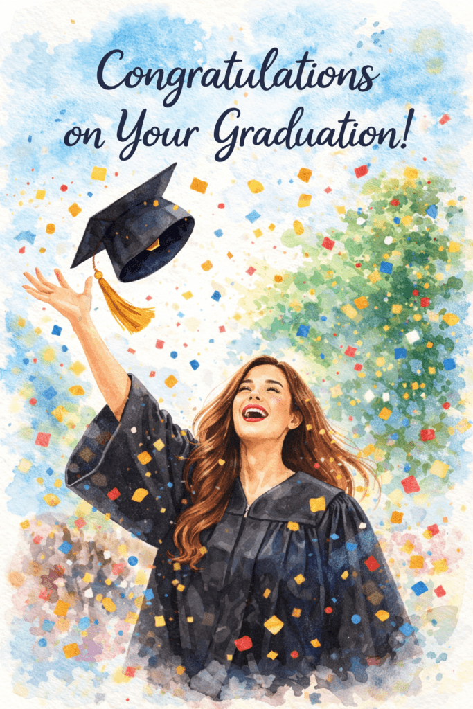 Our Graduation eCards bring these traditions to life in a modern, shareable way. With just a few clicks, you can send heartfelt congratulations to a graduate anywhere in the world. Choose from designs featuring diplomas, caps, confetti, and inspirational quotes like “Congratulations graduate—you’ve got infinite potential.”