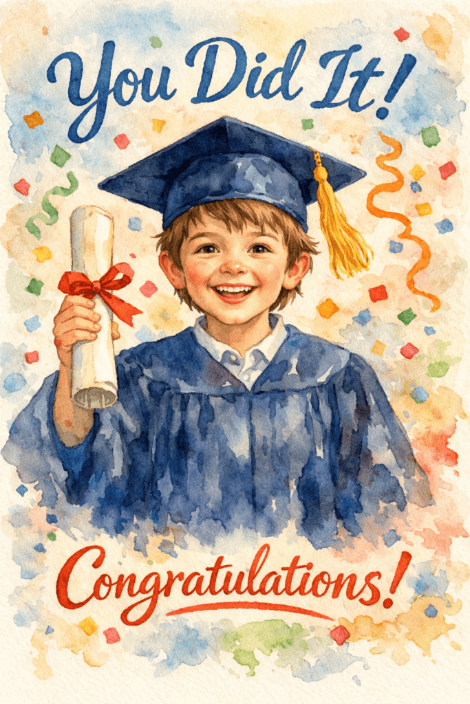 Whether you’re celebrating a preschool milestone, a college degree, or a professional certification, our free Graduation eCards fit every stage of achievement. They’re ideal for parents, teachers, friends, and coworkers to send instantly by email, text, or social media. With their uplifting messages and celebratory designs, these eCards let you join in the excitement—even if you can’t be there in person.