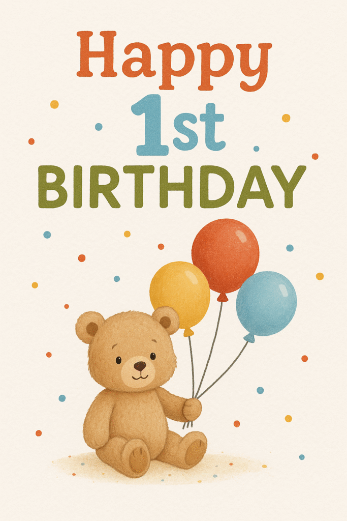 Happy 1st Birthday Bear Holding Balloons