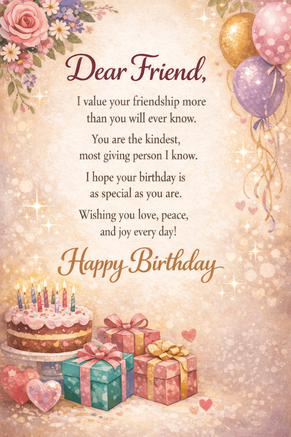 | A Dear Friend | “Celebrating another year of your wonderful life. May this day bring you all the peace and happiness you deserve.” |