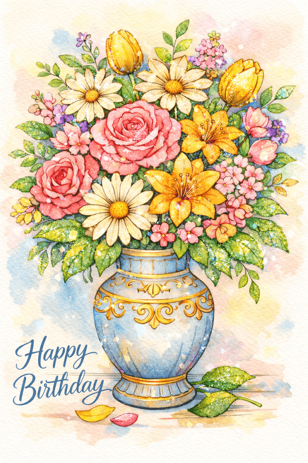 Happy Birthday Watercolor Flower Garden