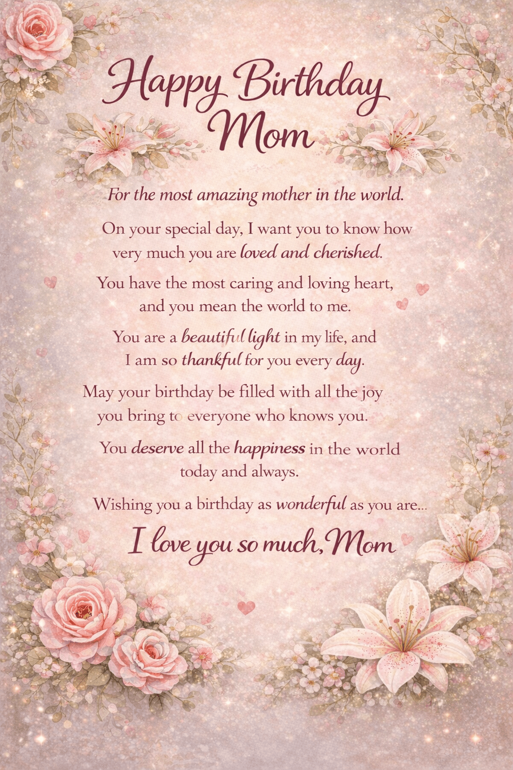 Happy Birthday Mom I Love You