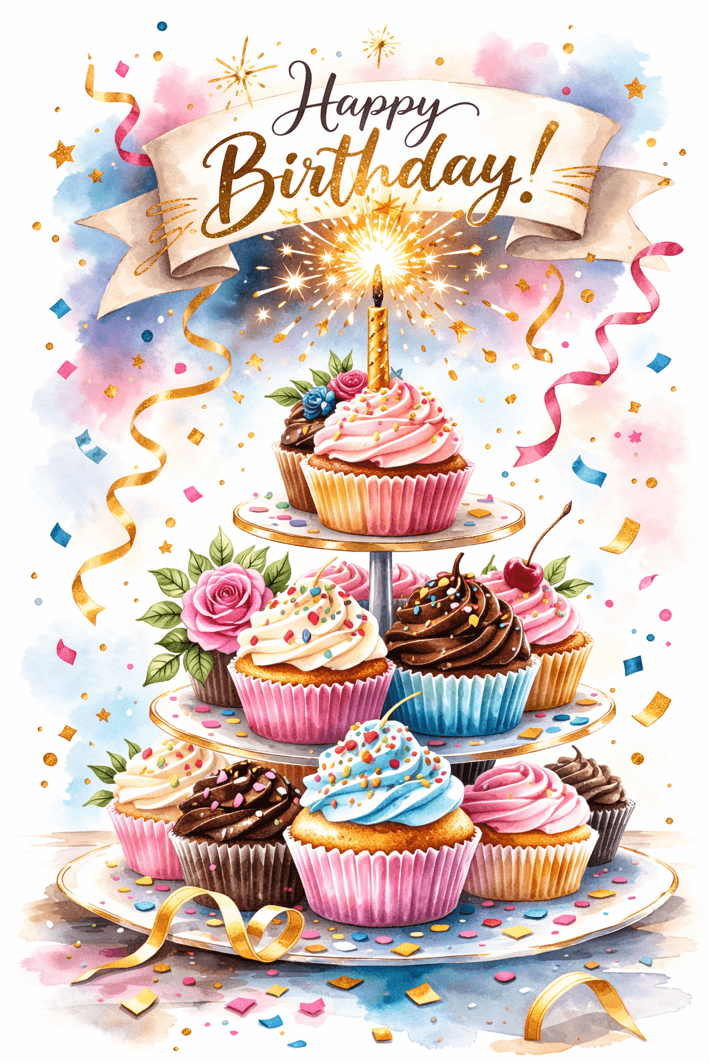 Happy Birthday Cupcake Tower