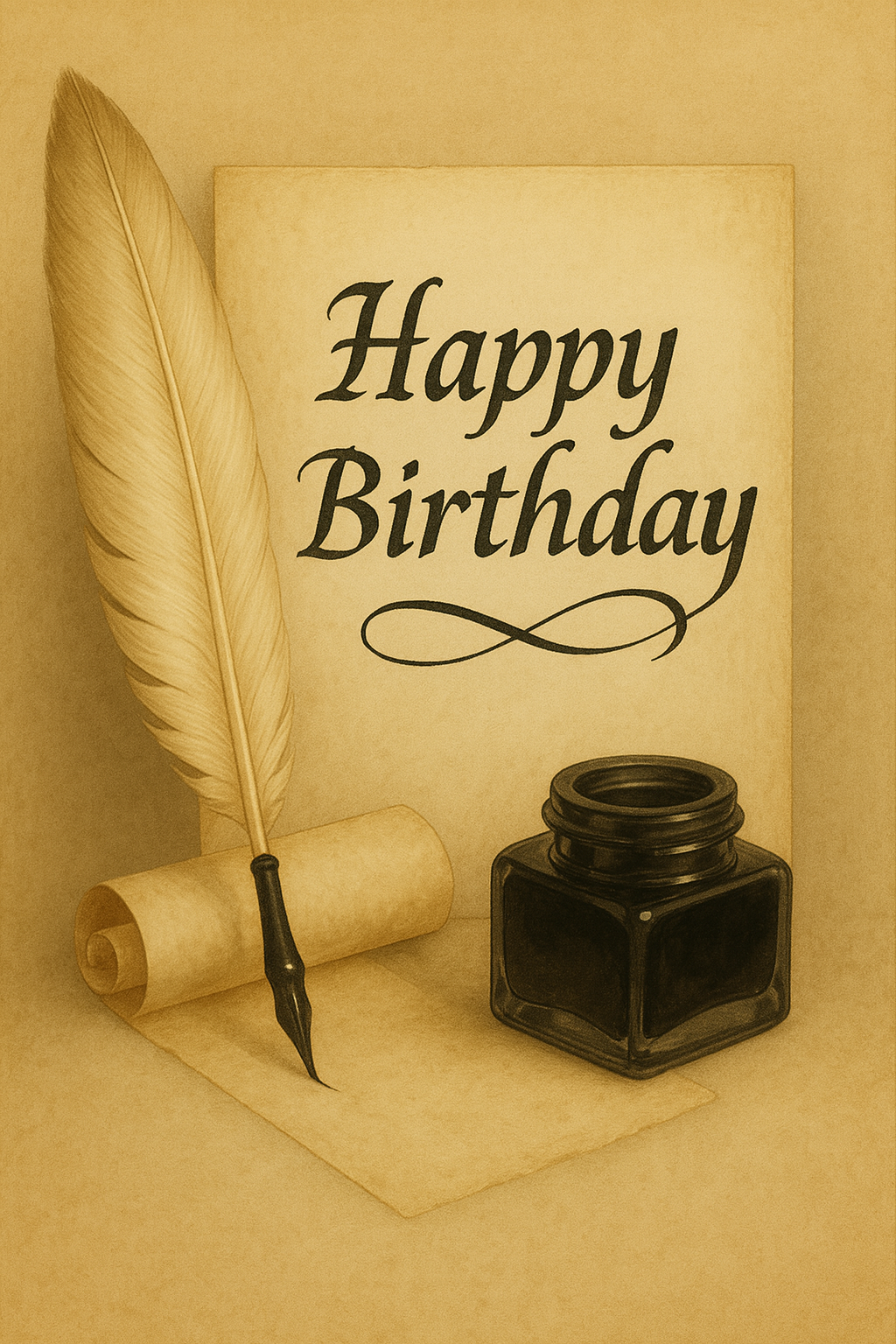 Happy Birthday Quill Pen And Inkwell