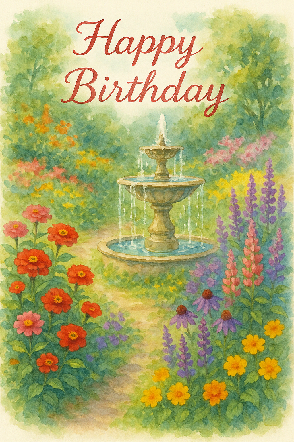 Happy Birthday Watercolor Flower Garden