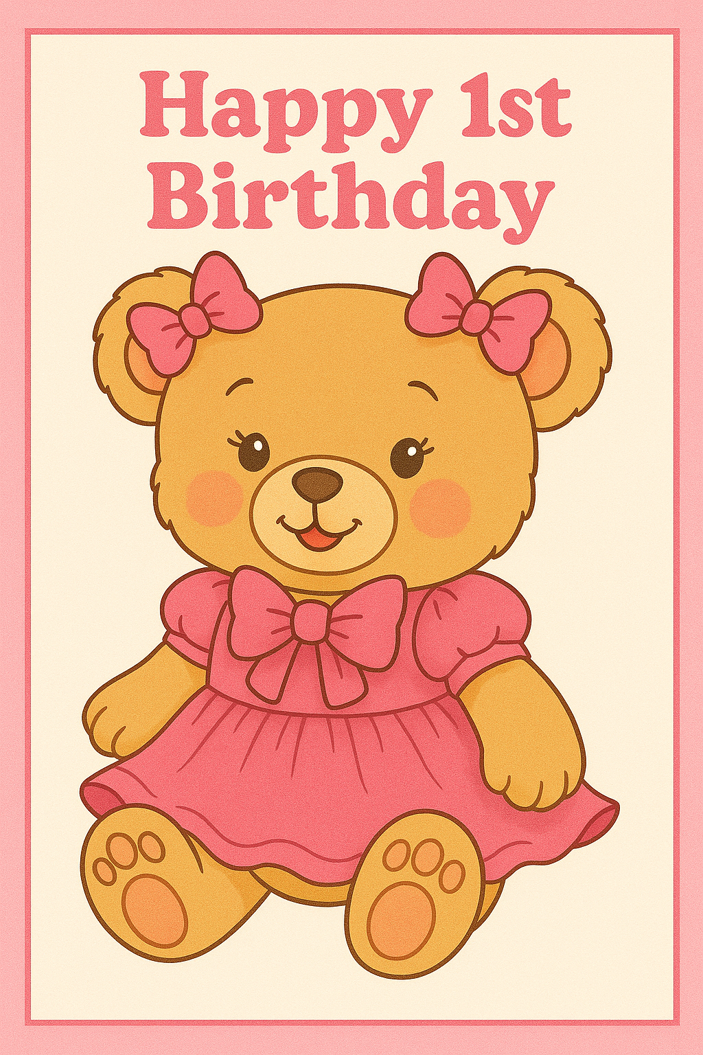 Happy 1st Birthday Teddy Bear And Bows