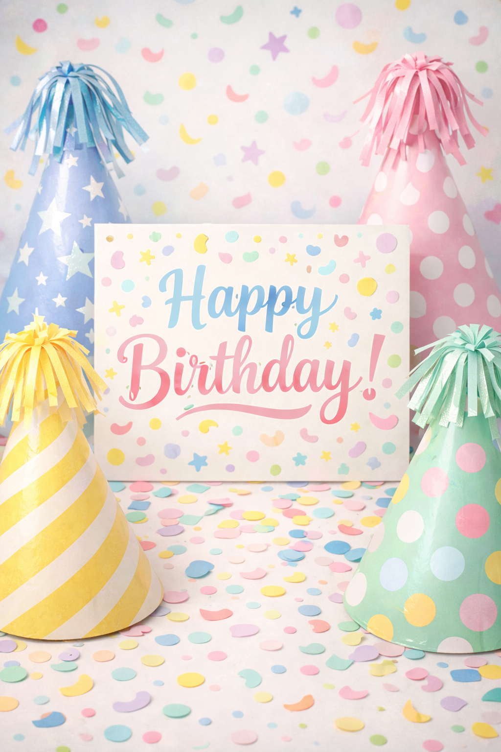 Happy Birthday Party Hats And Confetti