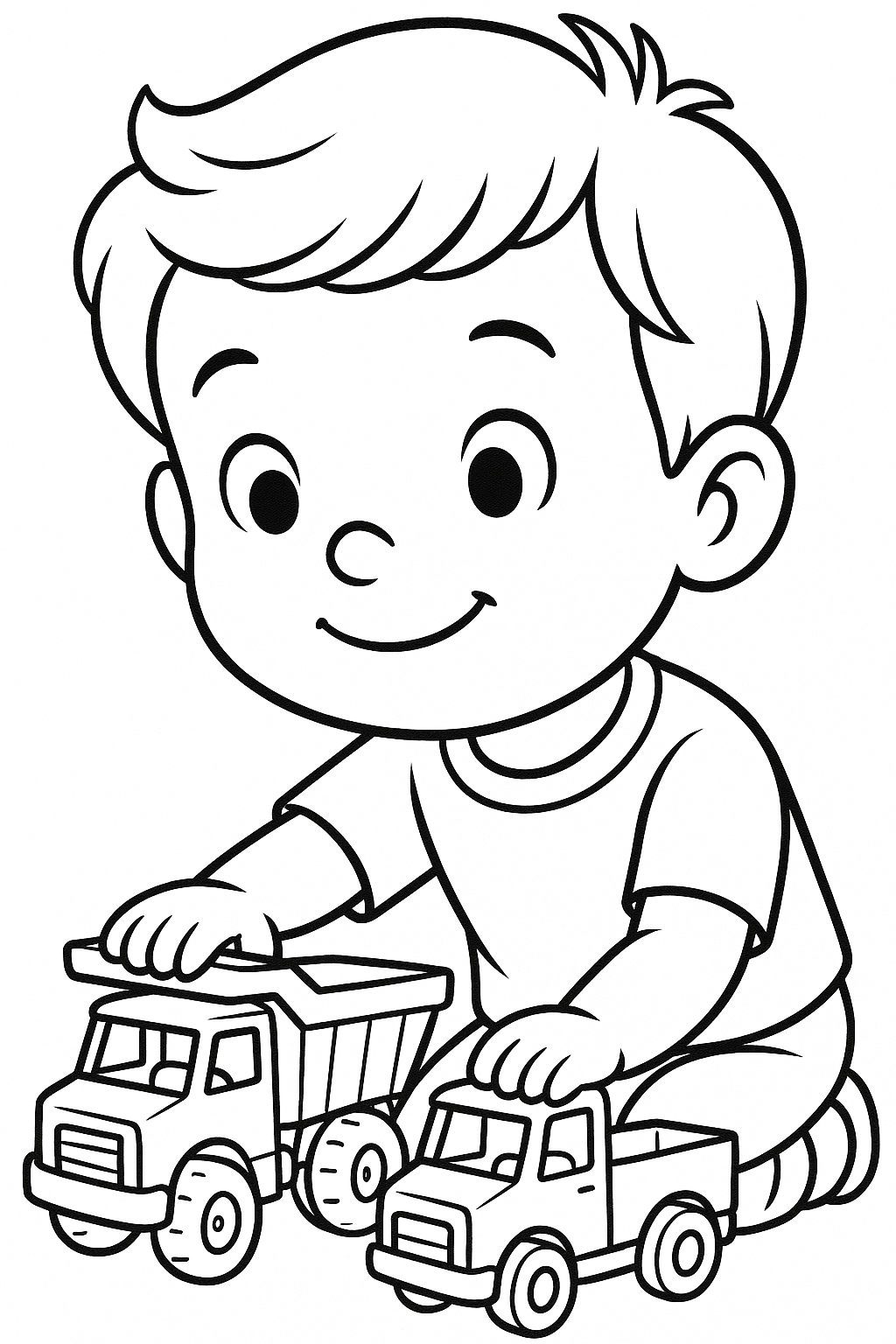 Boy Playing With Toy Trucks