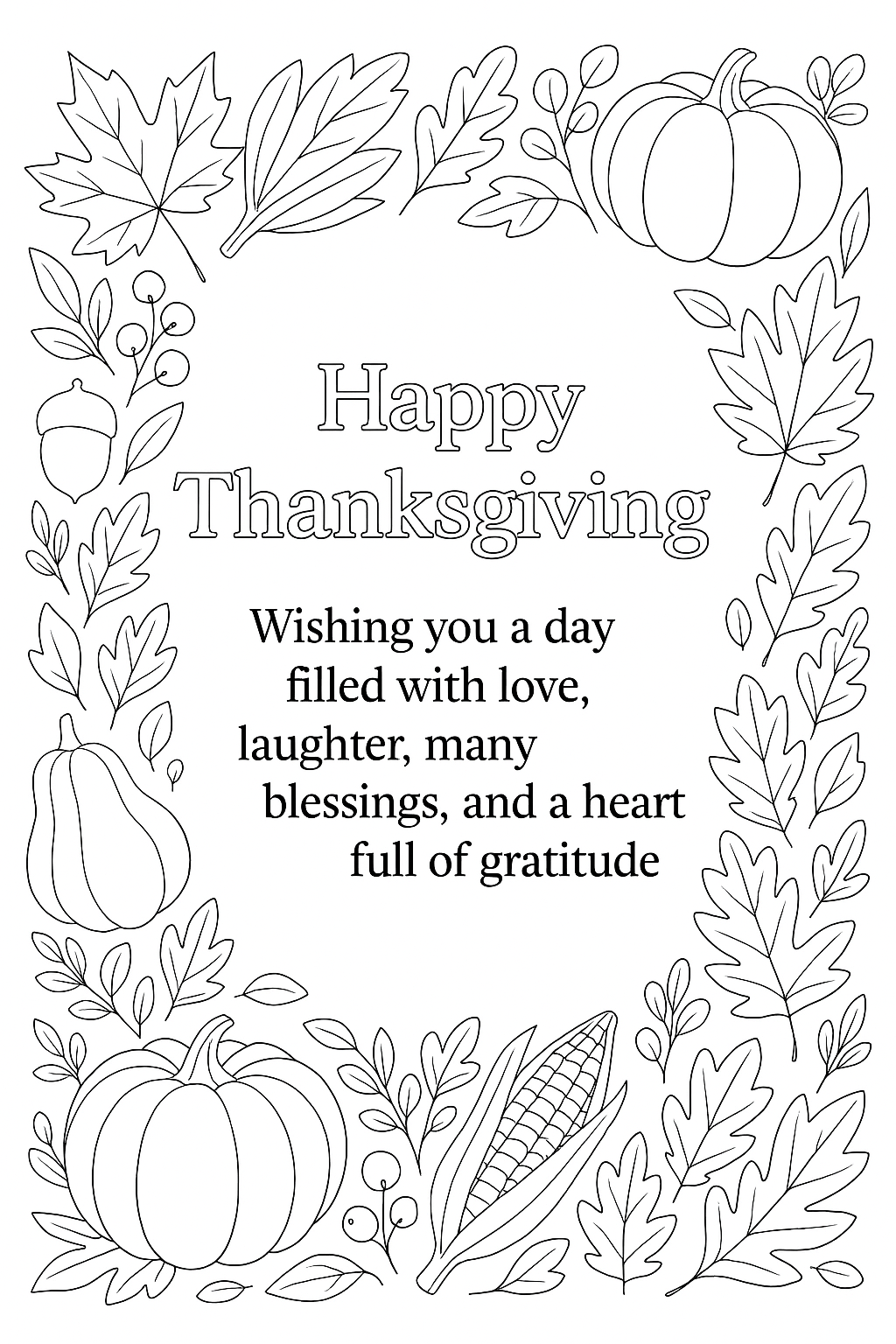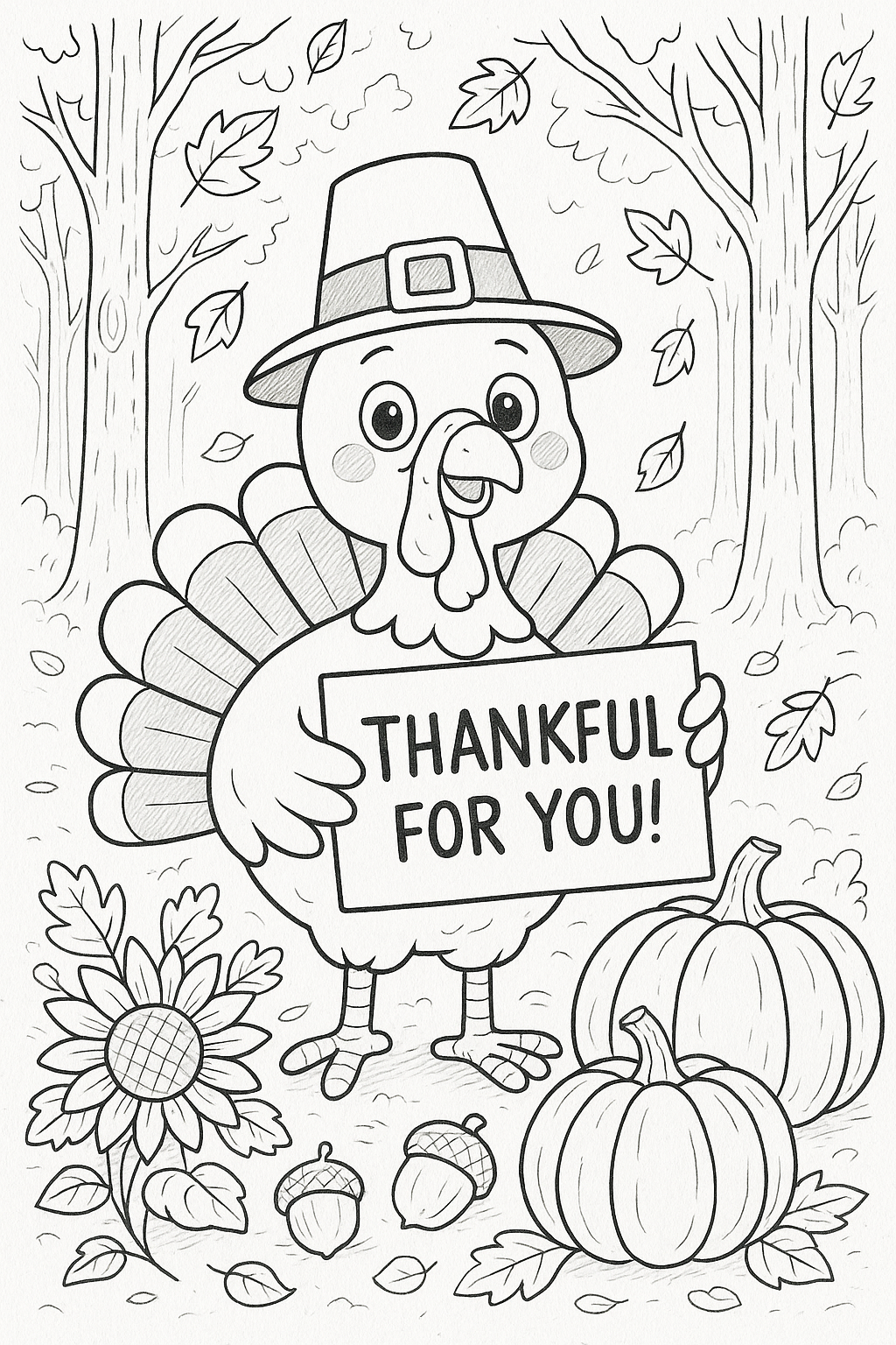 Give thanks in color with our free printable Thanksgiving coloring pages! This festive collection captures the heart of the season—family gatherings, cozy moments, and the joy of gratitude. Kids and adults alike can enjoy coloring cheerful turkeys, pumpkins, pies, and autumn leaves while celebrating all the things that make Thanksgiving special.