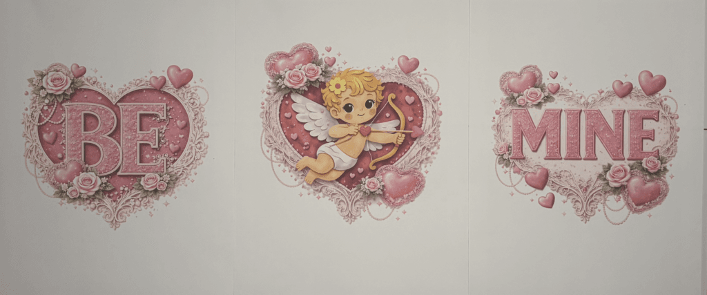 - The Cupid is centered nicely between BE and MINE