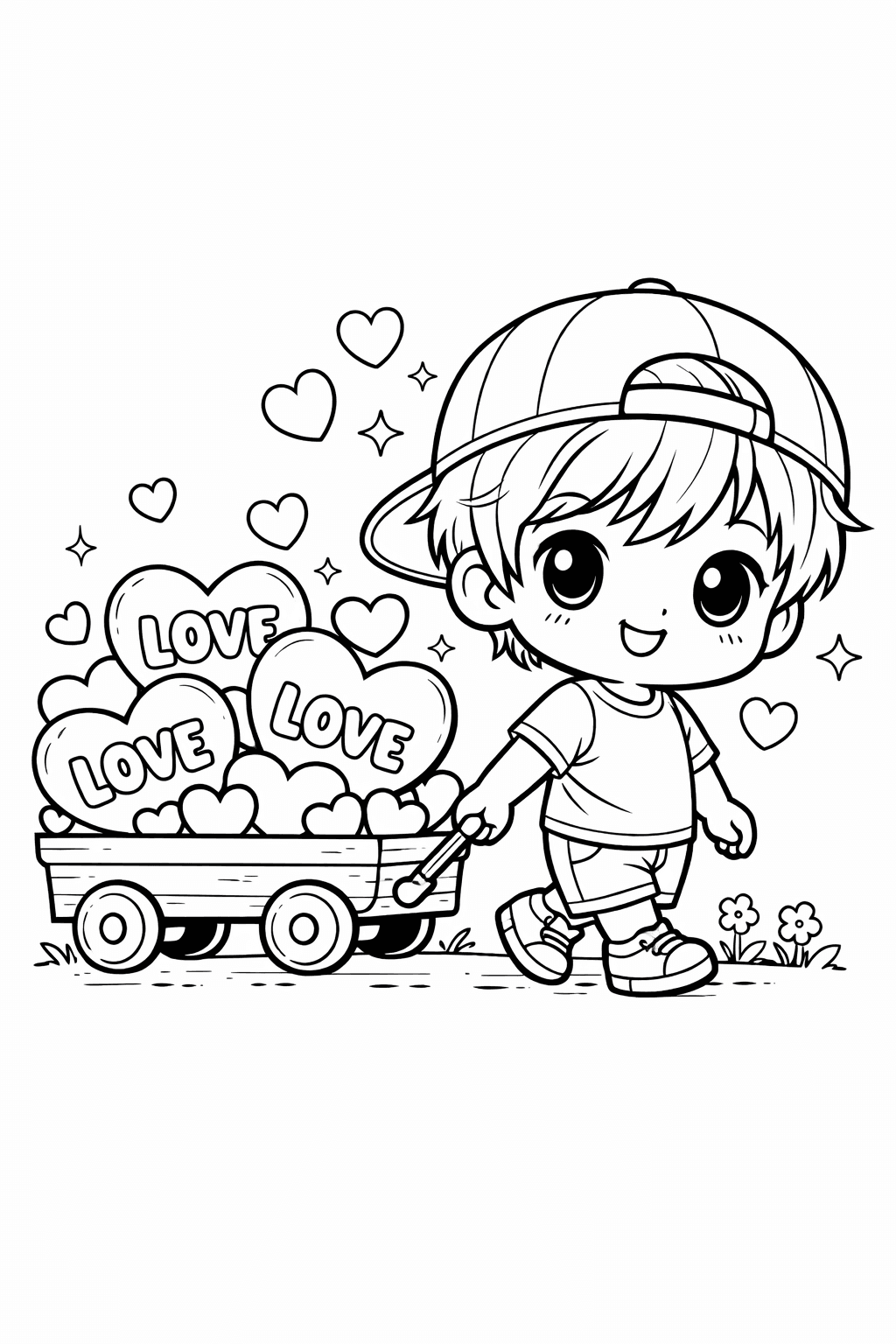Boy Pulling Wagon Of Hearts