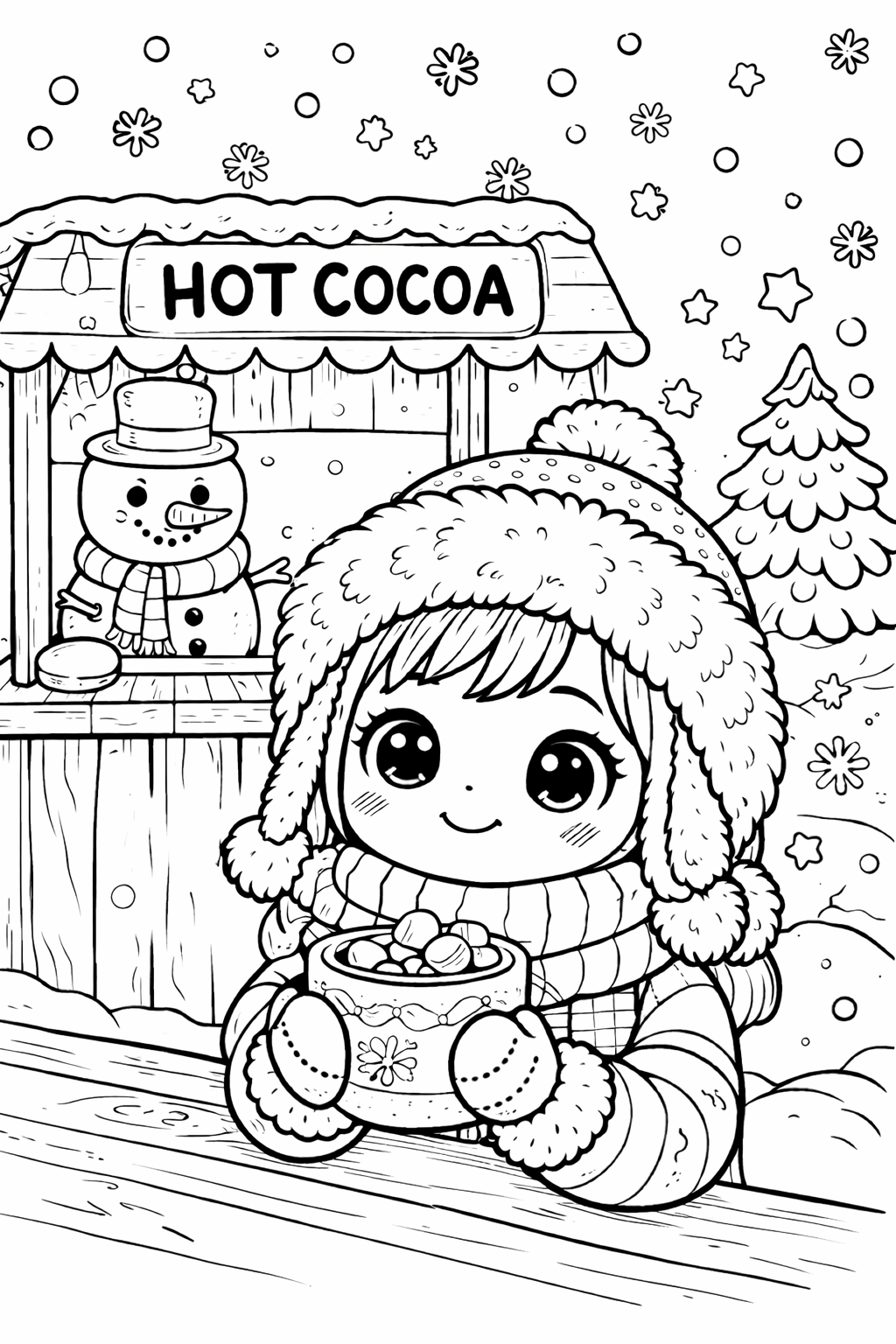 Snowman Selling Hot Cocoa And Kawaii Girl